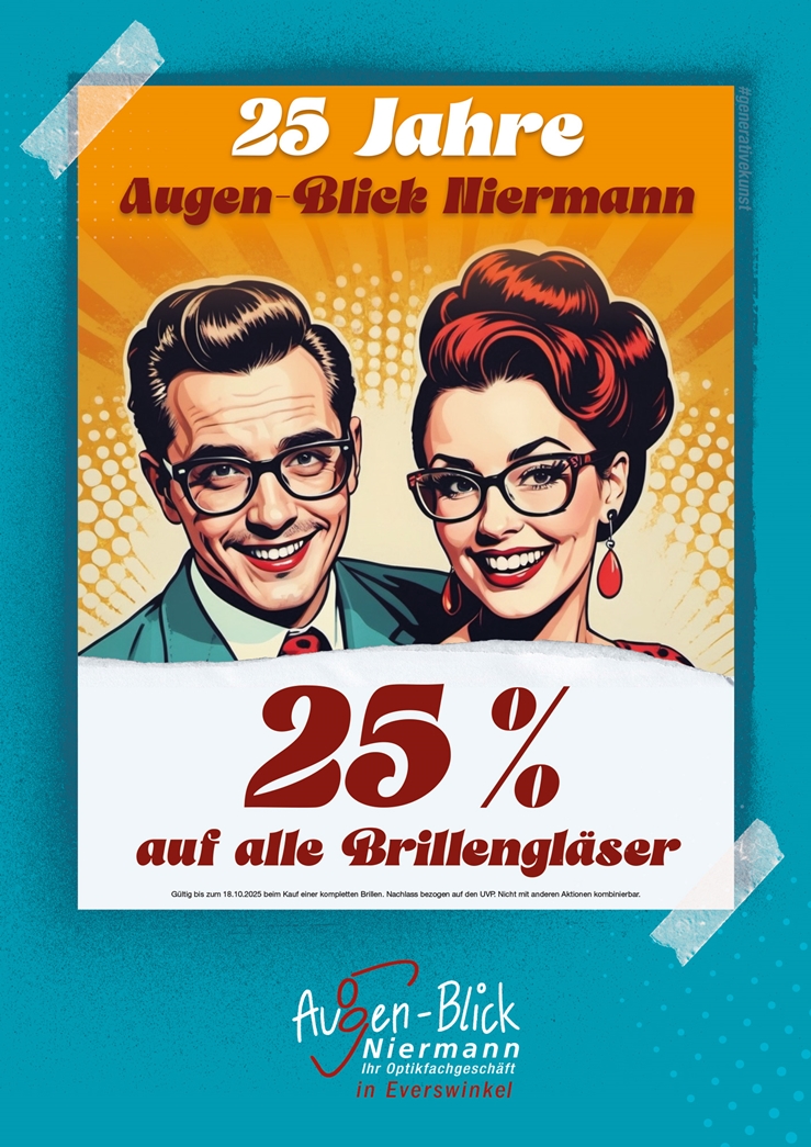 Drucken Sie sich Ihren GUTSCHEIN für eine ausführliche Augenglasbestimmung bei Ihrem Augenoptik-Fachmann in Everswinkel im Wert von 25,00 € jetzt aus! (*)